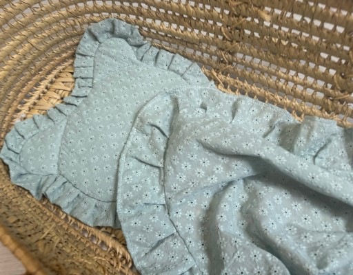 ✅ Zarówno kocyk jak i poduszka posiadają piękną ozdobną falbankę.