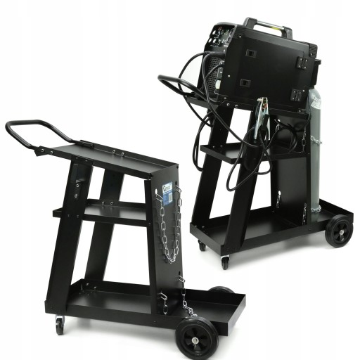 Wózek spawalniczy z uchwytem. Odpowiedni do spawarek typu: MIG, MMA, MAG oraz TIG.