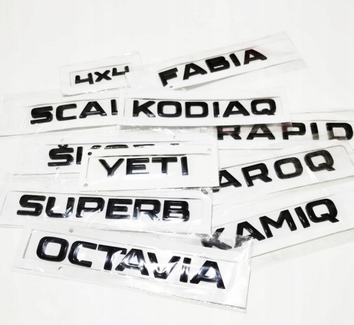 Emblemat napis długi SKODA czarny poł JAKOŚĆ OEM*