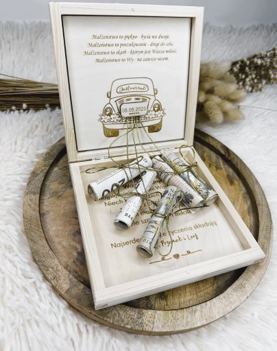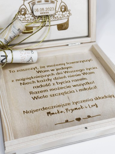 Wychodząc na przeciw Państwa oczekiwaniom stworzyliśmy Wyjątkowe personalizowane pudełko z dedykowanym grawerem na ślub, wesele bądź Jubileusz.