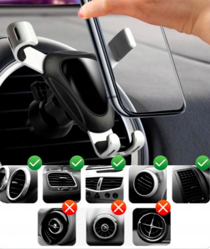 - Dla każdego typu nawiewu – uchwyt jest kompatybilny z 98% typów kratek samochodowych.