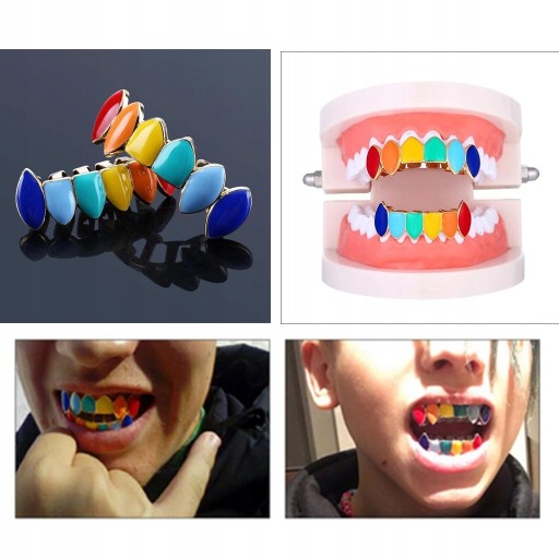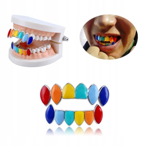 Kolorowe grille hip z górnymi i dolnymi zębami, do osobistego noszenia lub prezentu dla przyjaciół