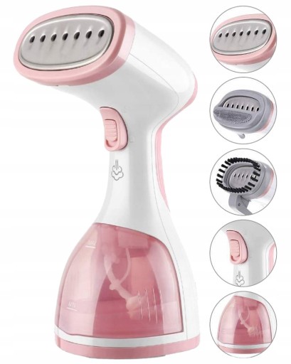Parownica homeasy do ubrań, różowa, przenośna, parownica do odzieży 5 w 1, Ręczny parowiec do tkanin, Usuwanie zmarszczek, Odkurzacz parowy z funkcją szybkiego nagrzewania do domu i podróży