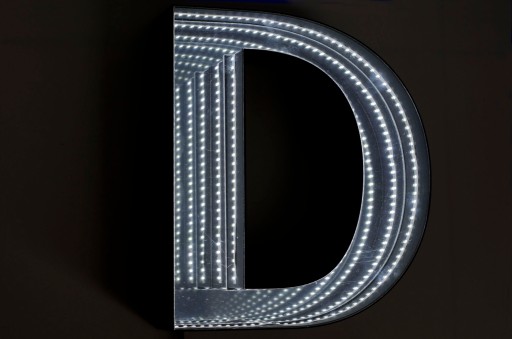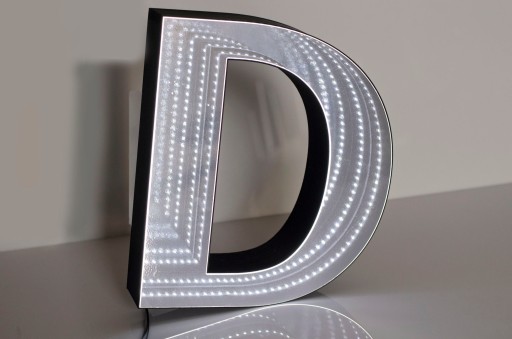 Litera 3D świecąca frontem z efektem lustra nieskończoności, z bokami z taśmy aluminiowej w wybranym kolorze, 1 szt.