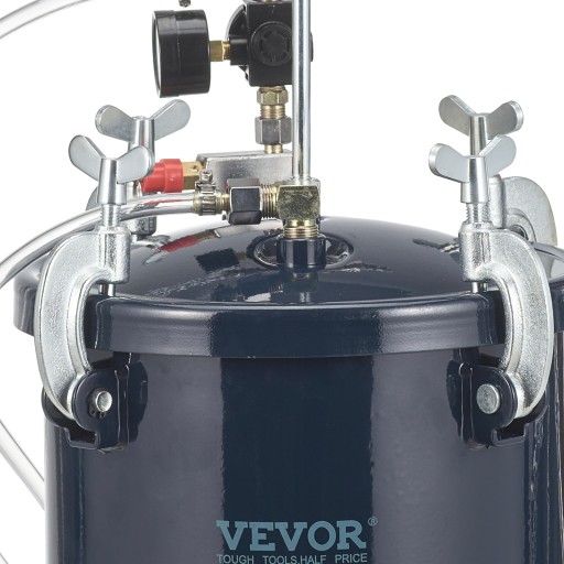 Ulepszone uszczelnienie: Zbiornik ciśnieniowy na farbę został ulepszony dzięki zastosowaniu wysokiej jakości, odpornego na ciśnienie materiału metalowego i gumowej uszczelki przy wylocie wiadra. Posiada cztery zatrzaski pokrywy, które bezpiecznie się zamykają i jest wyposażony w odporną na rdzę i szczelną uszczelkę gwintowaną. Przed opuszczeniem fabryki przechodzi test szczelności, aby upewnić się, że gaz nie wydostaje się na zewnątrz.