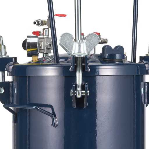 Zbiornik ciśnieniowy ma pojemność 8 galonów (30 l) i średnicę wlotu i wylotu 1/4 cala (6,35 mm) oraz średnicę wylotu cieczy 3/8 cala (3,175 mm). Jednocześnie można wykonywać kilka rodzajów operacji malowania przemysłowego.