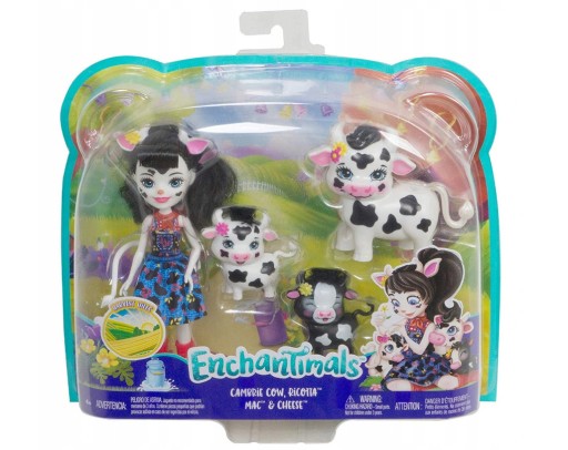Zestaw zawiera wyjątkową laleczkę Enchantimals Cambrie Cow. Laleczka ma charakterystycznie, dopasowaną fryzurę i buzie nawiązującą do jej kochanego pupila krówki. Ubrana jest w kolorową sukienkę i wysokie czerwone kowbojki. Ma długie, brązowe włosy, idealne do czesania i tworzenia stylizacji.