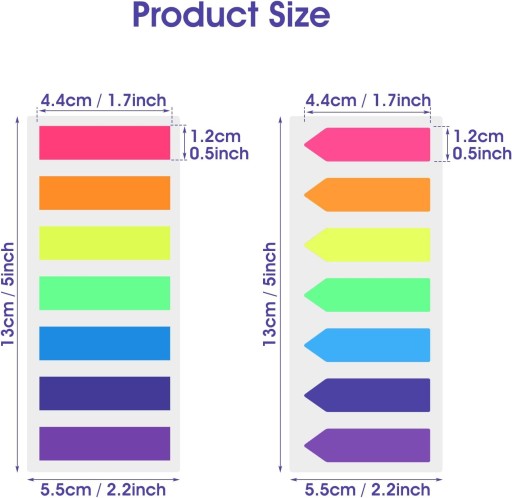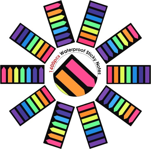 [OPAKOWANIE ZAWIERA] Łącznie 10 sztuk zakładek do indeksu kolorów neonowych, 1400 sztuk (1,3 x 4,3 cm) fluorescencyjne samoprzylepne zakładki w sumie 7 kolorów podstawowych, 2 różne wzory, zakładki do adnotacji książek i podkreślające ważne informacje