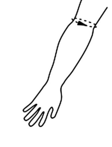 Aby dobrać rozmiar należy zmierzyć obwód łokcia przy wyprostowanej ręce: