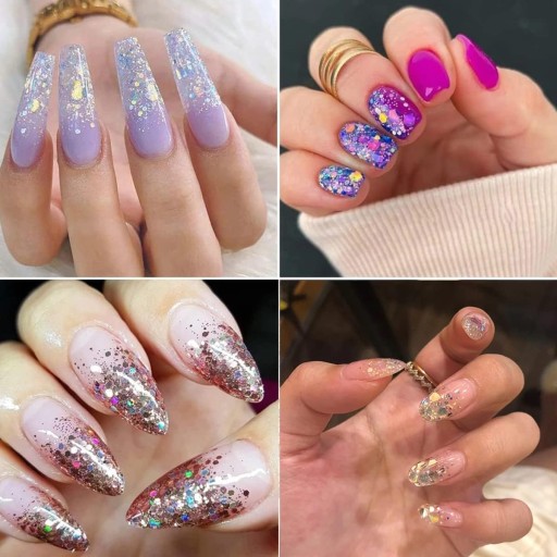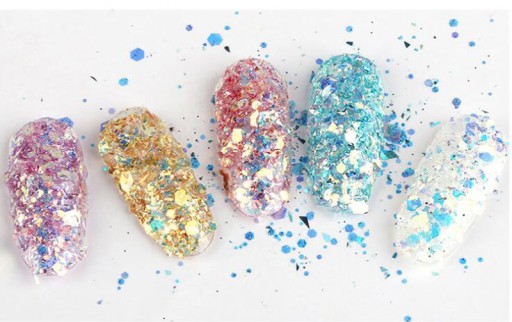 ❤️ Niesamowita ozdoba paznokci, subtelny brokat w połączeniu z różnego rodzaju kształtami o wielu rozmiarach, którymi utworzysz cudownie błyszczący i mieniący się manicure.