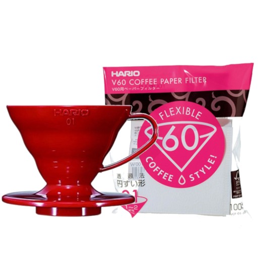 HARIO DRIP PLASTIKOWY CZERWONY V60-01 + FILTRY PAPIEROWE BIAŁE 100szt