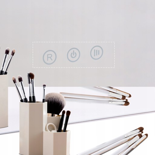 Белое стоячее зеркало с макияжем