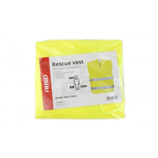 Pasuje na osoby: szerokość w klatce 96 - 128 cm, wzrost od 164-194cm. Kamizelka posiada CERTYFIKAT CE, fluorescencyjna z taśmami odblaskowymi, zapinana na rzepy. Materiał: dzianina poliestrowa, taśma odblaskowa szara.