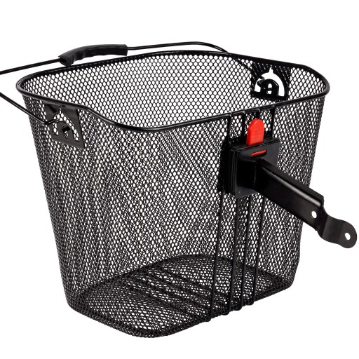 Przedni, metalowy koszyk rowerowy z mechanizmem typu CLICK, który bez problemu zabierzemy ze sobą na zakupy czy piknik z rodziną.