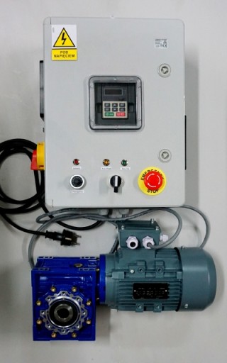 Aukcja dotyczy silnika polskiego producenta BESEL z przekładnią oraz falownika z przewodami.