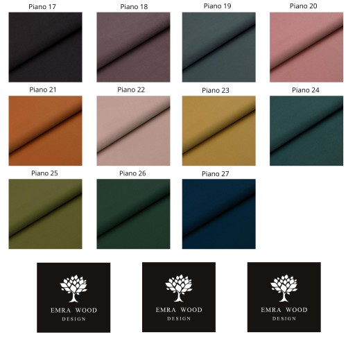 Tkaniny obiciowe PIANO Wysokiej jakości tkanina obiciowa Piano z powłoką hydrofobową ułatwiająca utrzymanie w czystości. Z tkaniny schodzą plamy po kawie, winie, czekoladzie, a nawet ślady po długopisie, dzięki czemu materiał tapicerski na dłużej zachowuje czystość i świeżość. Gęsto tkany miękki w dotyku włos z subtelnym połyskiem. Idealna dla osób ceniących sobie wygodę, komfort oraz praktyczne rozwiązania. Tkanina idealna na meble.