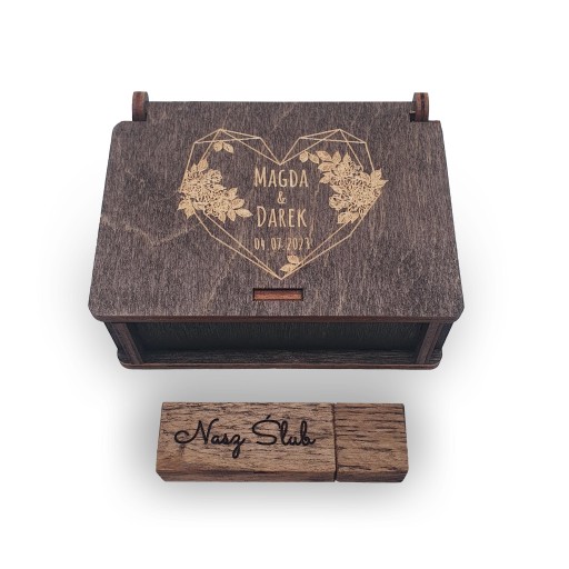 Wewnątrz możesz umieścić PENDRIVE z wygrawerowanym spersonalizowanym tekstem, który dodaje prezentowi jeszcze większej wartości sentymentalnej.