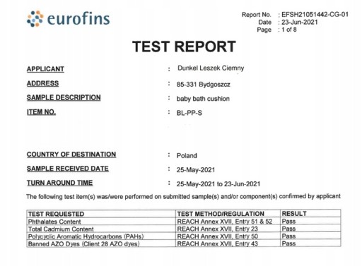 NASZE PRODUKTY SĄ PRZEBADANE I CERTYFIKOWANE - poduszka jest przebadana i nie zawiera związków szkodliwych, potwierdzone certyfikatem REACH