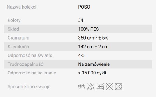 Tkaniny z kolekcji Poso pozytywnie przeszły także test na trudnopalność zgodną z normą PN-EN 1021-1:2014 oraz posiadają zwiększoną odporność na zaciągnięcia od zwierzęcych pazurków.
