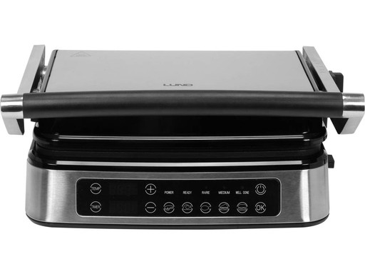 Kontaktowy grill elektryczny o mocy 2000W i cyfrowym panelu sterowania.