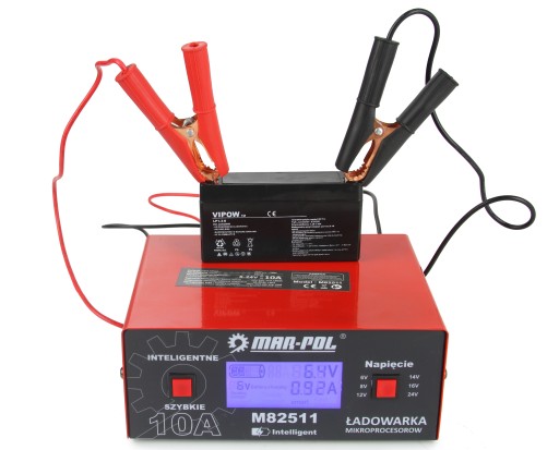 Prostownik mikroprocesorowy marki MAR-POL to prostownik z mikroprocesorowym systemem kontroli i sterowania w technologii PWM (Pulse-Width Modulation) z możliwością ładowania akumulatorów 6V, 8V, 12V, 14V, 16V i 24V