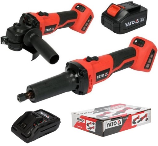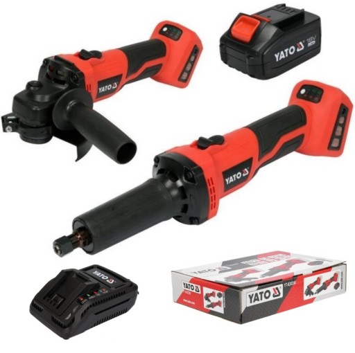 УГЛОВАЯ ШЛИФМАШИНА + ПРЯМАЯ АККУМУЛЯТОРНАЯ БАТАРЕЯ 18В 4Ач YATO НАБОР