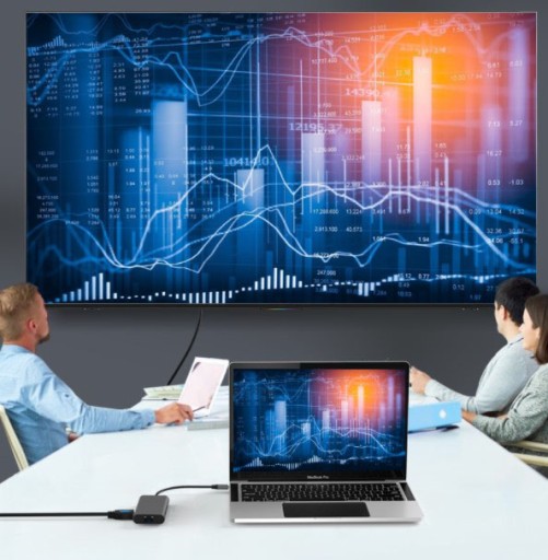 - ✅ Stacja dokująca - podłącz huba do komputera i zamknij pokrywę laptopa, a zawartość obrazu wyświetlaj na ekranie monitora.