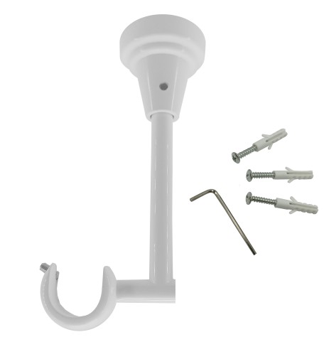 WSPORNIK SUFITOWY – w oferowanym produkcie zastosowaliśmy specjalne wsporniki umożliwiające montaż karnisza bezpośrednio do sufitu. Wsporniki są bardzo solidne, wykonane z metalu, dają pewność właściwego osadzenia rurek karnisza. Proste mocowane za pomocą kołków rozporowych.