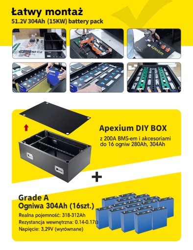 Do zestawu 16 ogniw dostępny jest na innej aukcji dedykowany box jako zestaw do samodzielnego montażu w pełni wyposażony.