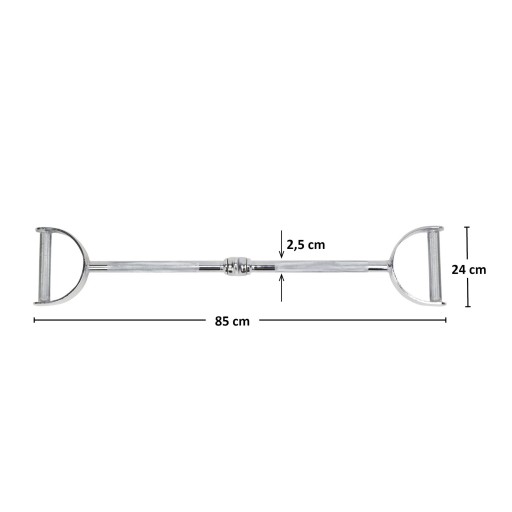 UW16 HMS to gryf obrotowy przeznaczony do treningu na wyciągu górnym i dolnym. Można wykorzystać go do całej gamy ćwiczeń na różne grupy mięśniowe górnych partii ciała, zaczynając od małych grup mięśniowych, jak biceps i triceps, przez przedni i boczny akton mięśni naramiennych, aż po mięśnie najszersze i prostownik grzbietu. Jego długość gwarantuje wiele możliwości chwytu, od bardzo wąskiego do bardzo szerokiego. Dzięki temu przy wykonywanym treningu gryf zagwarantuje rozwinięcie mięśni na różnych długościach ich przyczepów. Skrajne rękojeści ustawione są w chwyt neutralny, dzięki temu w trakcie ćwiczenia pozwoli zaangażować alternatywne przyczepy mięśniowe.