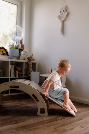 Po odwróceniu bujaka, dziecko może cieszyć się jeszcze większą różnorodnością zabawy. Bujak może pełnić funkcję domku lub mostka, dając możliwość tworzenia nowych scenariuszy i rozwijania wyobraźni.
