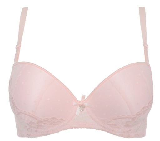 Biustonosz EMMA, powstał z myślą o kobietach preferujących wygodę, a zarazem zmysłową estetykę i elegancję. Atut stanowi jego elegancki i romantyczny design. Niemal w całości pokrywa go elegancka, subtelna koronka. Na mostku, znajduje się delikatna, dekoracyjna kokardka i ozdoba. Dzięki wykorzystaniu pianki gorseciarskiej z lekkim zgrubieniem na dole miseczki skutecznie eksponuje dekolt, nadając piersiom lekko zaokrąglony kształt, jednocześnie zapewniając pełną wygodę oraz swobodę ruchu. Czterostopniowe zapięcie na dwóch haftkach i odpinane, regulowane ramiączka pomagają w idealnym dopasowaniu biustonosza do ciała.
