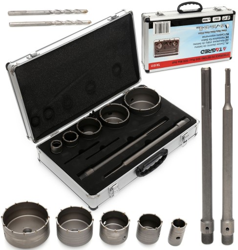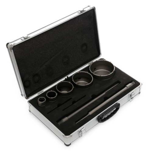 Zestaw ten jest wykonany z najlepszej gatunkowo stali a widią z bardzo twardego materiału - węglików spiekanych. Dzięki adapterowi, otwornice można zamontować w uchwytach wiertarek w standardzie SDS-PLUS. Adaptory nadają się również do montażu w standardowych główkach zaciskanych. Cały komplet zamknięty jest w bardzo estetycznej i funkcjonalnej walizce ułatwiającej przechowywanie oraz transport narzędzi.