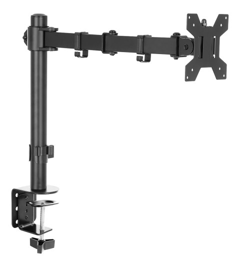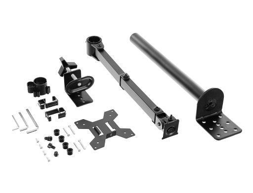 - Regulowane w 4 punktach ramię o długości 42,5 cm (liczonej od środka pionowej rury do płyty mocującej monitor)