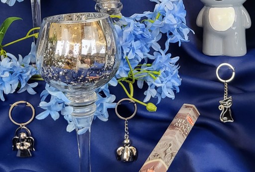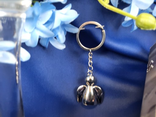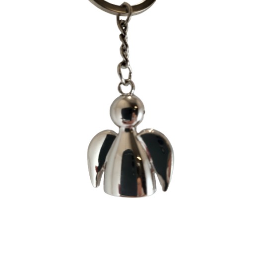 - metalowy brelok w kształcie anioła w srebrnym kolorze