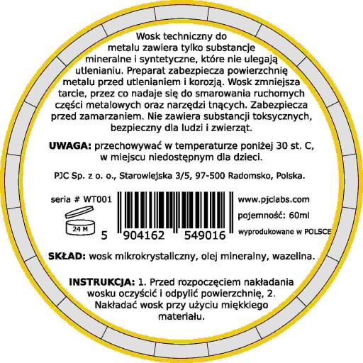 Skład: wosk mikrokrystaliczny, olej mineralny, wazelina.