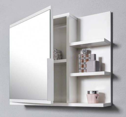 Modna i funkcjonalna biała szafka łazienkowa z lustrem i półkami - PRAWA