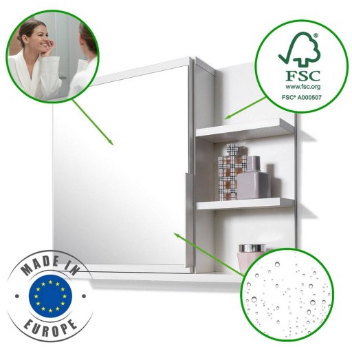 Nasza szafka z lustrem i półkami to mebel produkcji polskiej, który łączy dobrą cenę z bardzo wysoką jakością. Funkcjonalna konstrukcja, dzięki której uporządkujesz najważniejsze kosmetyki i akcesoria.