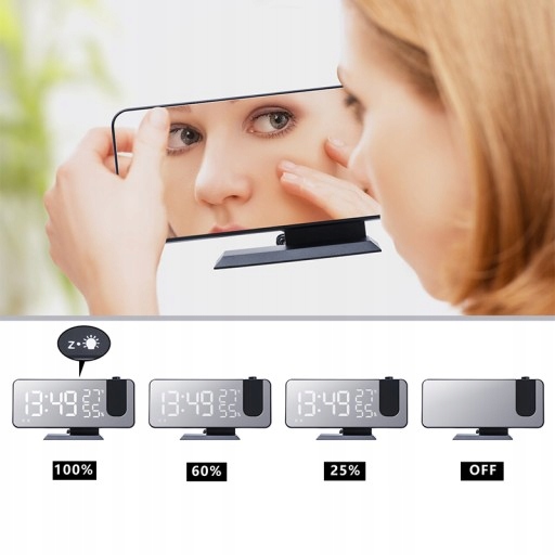【Wbudowana bateria, wykorzystująca lustro akrylowe】 Łatwy w użyciu , Zasilacz DC5V i wtyczka do gniazdka lub gniazda zegara i gotowe do pracy .Guzikowa 2032 może być używana do ustawiania czasu i alarmu, nie ma potrzeby zresetuj czas, gdy zasilanie jest wyłączone.Jednocześnie jest to budzik z projekcją, który może być używany jako lustro.Ręcznie dostosuj jasność ekranu, aby poprawić komfort użytkowania.