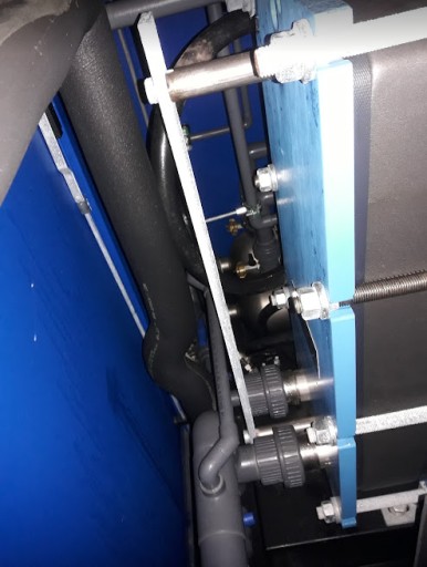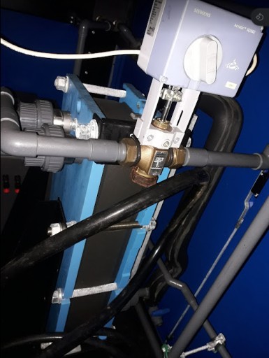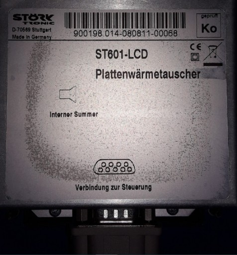 Centrala odzysku ciepła ze sterowaniem STORK, wymiennikiem płytowym skręcanym GCD 016P, wymiennikiem płytowym lutowanym, dwiema nierdzewnymi pompami, zbiornikami itd. Wymiar zewnętrzny 180 x 82 x wysokość 200cm +20cm rury wychodzące z sufitu szafy. Wymiar wymiennika skręcanego 32 x 19 x 79cm. Wymiar wymiennika lutowanego 29 x 13 x 45cm. Komplet pochodzi z zamkniętej Niemieckiej firmy. Do samego końca pracował. Był co roku serwisowany.
