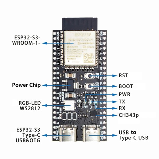 ESP32-S3-DevKitC-1 N8R2 Wi-Fi BLE 5.0 Mesh Type C