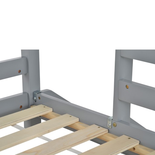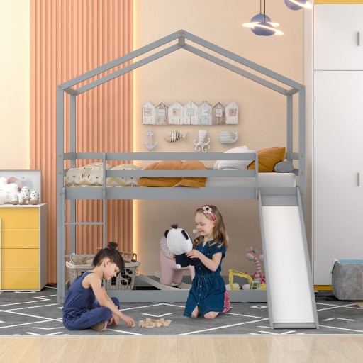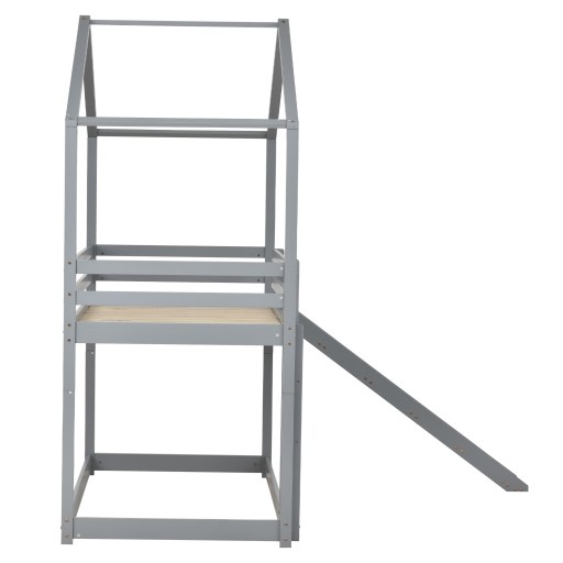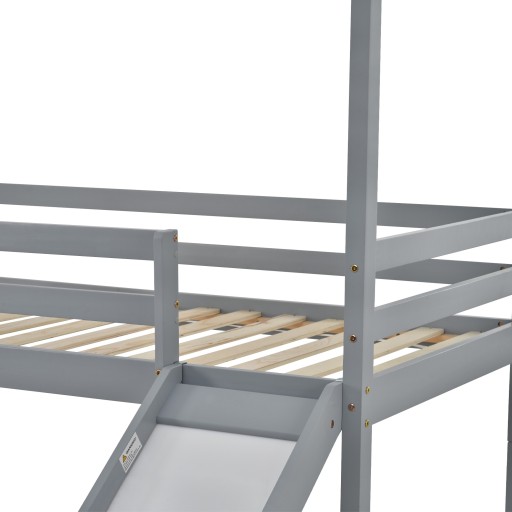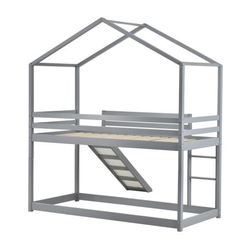 Łóżko piętrowe ze zjeżdżalnią, niskie łóżko dziecięce Rama łóżka piętrowego Łóżko z litej sosny z podstawą z listew 90 x 200 cm, szary