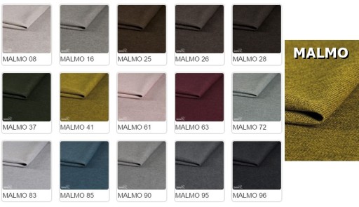 Wzornik z kolorami tkanin jest materiałem poglądowym i nie stanowi podstawy do reklamacji. Ze względu na ograniczenia wynikające z technologii oraz indywidualnych ustawień monitora, kolory mebli oraz tkanin ukazane na ekranie monitora mogą różnić się od rzeczywistych kolorów oferowanych mebli.