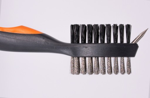Po wykopaniu znalezisk możesz wyczyścić szczotką plastikową przedmioty ze srebra, złota, miedzi. Częścią stalową szczotki można czyścić przedmioty z żelaza. Szczotka na górze ma stalową końcówkę służącą do zeskrobywania np. wąskich rowków.