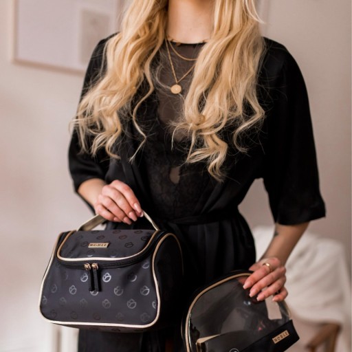 Kosmetyczki pochodzą z bardzo ekskluzywnej kolekcji w czarno złotej oprawie i mogą być wspaniałym pomysłem na prezent.