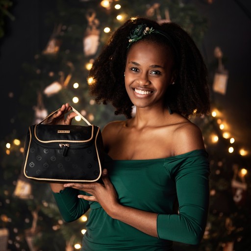 Dodatki w kolorze złotym znakomicie harmonizują z głęboką czernią materiału kosmetyczek. Podczas projektowania tej kolekcji zadbano o każdy drobiazg w tym odcień złota doskonale komponujący się z całością.