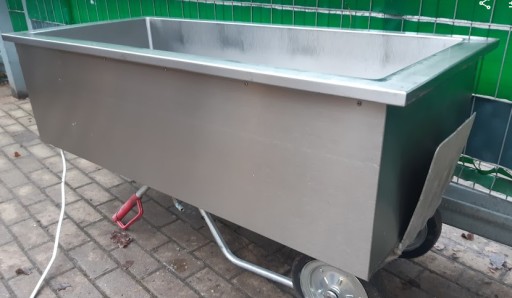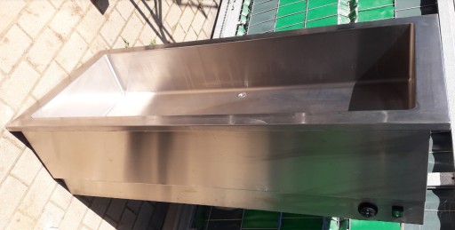 Bemar grzewczy wpuszczany w blat, przeważnie ciągu wydawczego, o wymiarze zewnętrznym 62 x 142,5 x wysokość 40cm. Wymiar wanny 50 x 127,5-128 x 21,5-22cm głębokość, więc na kombinacje pojemników GN. Regulacja płynna temperatury , przyłącze kanalizacji i zasilanie na 230V. Po zakupie proszę napisać który wysłać (zdjęcia 1-6 lub zdjęcia 8-10)