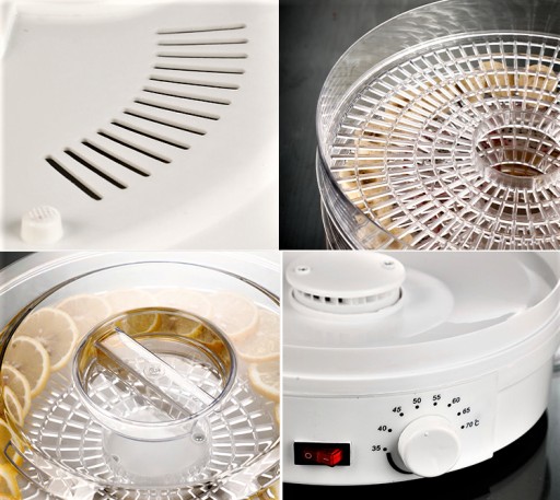 ➡️ 8-stopniowa regulacja temperatury w zakresie od 35-70°C pozwoli Tobie idealnie dopasować temperaturę do rodzaju suszonej żywności.