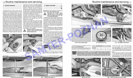 - szczegółowy i wyczerpujący poradnik serwisowy, pomocny zarówno przy prostych czynnościach obsługowych, jak i skomplikowanych naprawach (wymiary naprawcze, tolerancje, luzy, momenty dokręcania połączeń gwintowych, parametry zużycia)