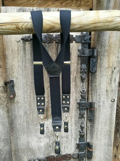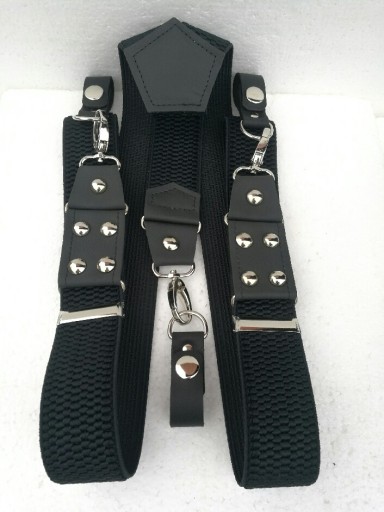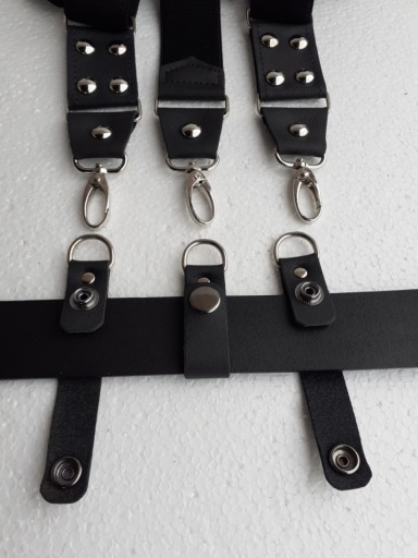 WYKONANE Z DOBREJ JAKOŚCIOWO GUMY SZELKOWEJ.POSIADAJĄ REGULACJĘ DŁUGOŚCI A SOLIDNE SZLUFKI I KARABIŃCZYKI DOBRZE UTRZYMUJĄ SPODNIE NA PASKU.PO ODPIĘCIU SZLUFEK SZELKI MOGĄ BYĆ MOCOWANE DO SPODNI ZA POMOCOM KARABIŃCZYKÓW.WSTAWKI WYKONANE SĄ Z WYSOKO GATUNKOWEJ SKÓRY LICOWEJ KOLORU CZARNEGO DZIĘKI TEMU SZELKI BĘDĄ SŁUŻYŁY PRZEZ DŁUGI CZAS.SREBRNY KOLOR METALOWYCH KARABIŃCZYKÓW,RAMEK,NAPY,REGULATORÓW.NITY KALETNICZE 11 MM STALOWE BOMBKA.GUMA SZEROKA NA 4 CM.ROZCIĄGAJĄCA SIĘ NA 160 CM.SZLUFKI SKÓRZANE PASUJĄ NA SZEROKOŚĆ PASA DO 4 CM.